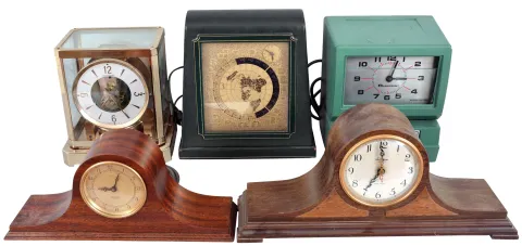 Clocks- 19 (Nineteen) Electric Clocks: assortment of electric clocks by makers including Mastercrafters Kalex, Acroprint, Telechron, Sangamo, IBM, General Electric, Jefferson, Hamilton, Chelsea, Stromberg, Waterbury, and Waltham. None tested. Sold "as is".
