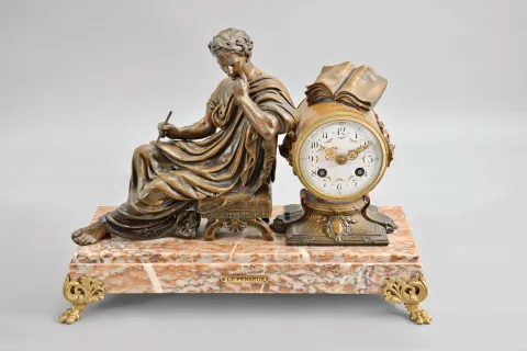 French, Marti & Cie, 8 day, time and strike, spring brass movement figural mantel clock.