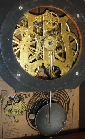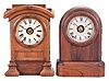 Clocks- 2 (Two): (1) Seth Thomas Clock Co., Thomaston, Conn., "Tudor No. 1" shelf clock with a spring driven, 8 day, time, strike and alarm movement (Lyre) in a rosewood veneered case, c1875. (2) Seth Thomas Clock Co., Thomaston, Conn., "Arch Top" shelf