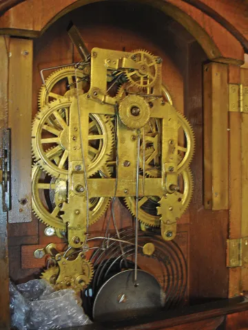 (1) The case is in good condition with some veneer loss on the left side if the bezel and the left and top side of the door. There is some finish left on the case. The painted dial is original with some poor restoration work. The hands are original "ST" hands. The movement is signed. (2) The case is in good condition with very minimal veneer loss. The original dial pan has been repainted. The "ST" hands are new. The movement is signed. ***NOTE*** The dimensions are for clock number (1) .
