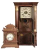 Clocks- 2 (Two): (1) Seth Thomas, Thomaston, Conn., 8 day, time and strike, weight column and cornice shelf clock, c1870 (2) Ansonia Clock Co., New York, "Syria", 8 day, time and strike, spring brass movement cabinet model mantel clock, c1894