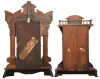 (1) The case has some original finish and is in good condition. The paper dial, hands and stenciled door glass are all original. (2) The case is in very good condition with some original finish. The dial, hands and door glass are all original.