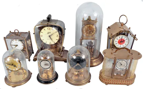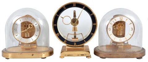 Clocks- 15 (Fifteen) Electro-mechanical and 400-Day: 4 (Four) battery-powered Kundo clocks with magnetically impulsed pendulums and 11 (Eleven) 400 day or anniversary clocks by makers such as Koma, Schatz, Kieninger Obergfell, Kundo and others. Sold "as is".