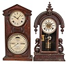 Clocks- 2 (Two): (1) Waterbury Clock Co., Waterbury, Conn., "Paris", 8 day, time and strike, spring brass movement shelf clock, c1891 (2) Ithaca Calendar Clock Co., Ithaca, New York, "No. 7 Shelf Cottage", 8 day, time and strike, spring brass movement