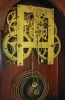 Brewster & Ingrahams, Bristol, Conn., Gallery hanging clock with an 8-day spring driven East-West timepiece movement with a brass spring in a crotch mahogany case.