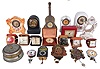 Clocks- 35 (Thirty-five) Small Clocks: large assortment including many antique and vintage travel clocks, alarm, and novelty clocks by makers such as Keebler, Sheffield United, Ansonia, Terry Clock Co., Lux, Westclox Ingraham, Movado, Bulova, Imhof, and