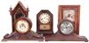 Clocks- 12 (Twelve) Wood Case Mantel: an assortment of 8 day and 30 hour clocks, many striking, with makers including New Haven, Waterbury, Gilbert, Seth Thomas, Atkins, and others in tambour, steeple, walnut parlor, octagon top, cottage and other cases.
