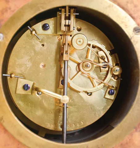 very dirty, retains much of its original gilding, decorated panels very good, minute hand replaced, movement clean, runs and strikes