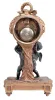 French, J.E.D., Paris, 8 day, time and strike, spring driven brass movement figural mantel clock with white enamel dial reading "Festeau le Jeune Hger du Roy / Paris". Cast bronze case has some remains of the original gilding. Original porcelain dial is perfect with original hands. Pendulum may be a replacement.
