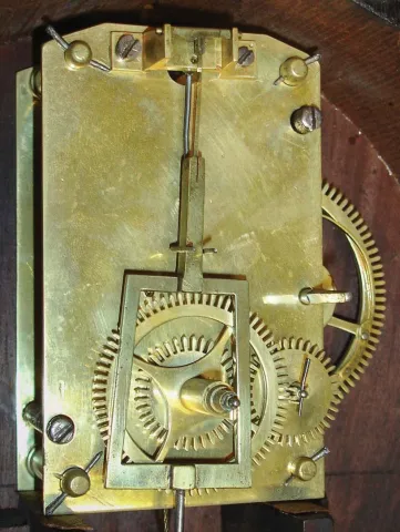 Massachusetts, likely Boston, early 8 day, weight driven brass movement patent or banjo timepiece.