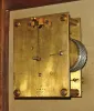 The movement and case are genuine Elliott, but this is NOT a true war time RAF timepiece. Rather, it was assembled from various Elliott parts and a dial painted to make it look like a RAF clock. The beech case has lost most of its finish. Painted metal dial is flaking and needs to be stabilized, but the RAF logo and outer ring used to color-code 5 minute intervals is still in good shape. The fusee has a chain and ticks when the crutch is moved manually. Pendulum is absent. One wooden peg is also missing. Signed movement is dated 1942.