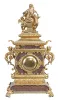 Germany, Lenzkirch, 8 day, time and strike, spring driven brass movement marble and brass figural mantel clock. Serial No. 547038. Red marble and brass ornaments in very fine condition has a couple minor chips on the marble base. Brass dial is very nice and may have been originally silvered. Original hands. Movement is signed.