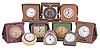 Desk and travel clocks- 10 (Ten), 30 hour and 8 day, Swiss and American, makers including Waltham, New Haven, Majestic, Junghans, and others, most with folding, leather bound cases, one desk clock with molded celluloid case and white enamel dial advertising the Lady Racine watch, another with gunmetal case and easel back, and more 8 running, cases good to poor, "as is "