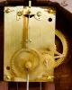 Mahogany banded case in original finish has a small damage at the hinge side member on the bottom door. The head is interesting in that it is made up laminated veneers. The dial has some light surface stains and an interesting signature of: "Biddle & Mumford, Clerkenwell, London", the apparent retailers.