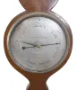 Vanini and Montini, Peterborough, England, wheel or banjo barometer with alcohol thermometer, in an inlaid mahogany veneered case with silvered dial and brass indicator knob. Case has some small veneer repairs. The crest looks to have been given a new clear coat. Unit does contain mercury, but may need servicing. Thermometer appears to function.