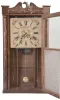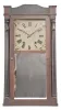 Clocks- 2 (Two): (1) Unknown, 30 hour, time and strike weight wood movement carved column & splat shelf clock. c1832 (2) Elisha Hotchkiss, Burlington, Conn., 30 hour, time and strike weight wood movement half column & splat shelf clock. c1835