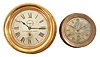 Clocks- 2 (Two) Seth Thomas Marine Clocks: Seth Thomas Clock Co., Thomaston, Conn., ship's lever marine clocks, 8 day, time only, spring-driven jeweled movements in brass cases, one with screw on bezel and one with a hinged bezel, 4 and 5 inch silvered