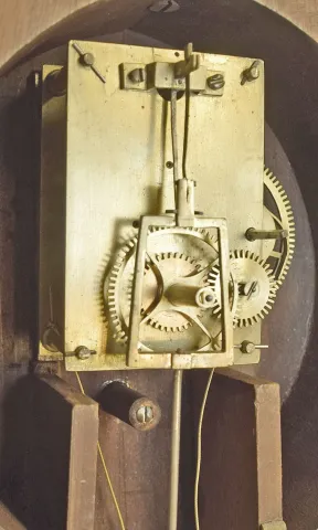Unknown, 8 day, weight brass movement patent or banjo timepiece.