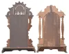 (1) The case has lost its finish, but is otherwise in good condition. The original paper dial has aged. The hands are original. The movement is signed. (2) The case has been refinished and the paper dial replaced. The hour hand is a incorrect replacement. The pendulum bob is marked Eclipse. The movement is signed. The glass and stencilled design are original.