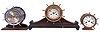 Clocks- 6 (Six) Marine and wall Clocks: most by Waterbury Clock Co. including their "Ship's Bell No. 11" on wood stand, c1915; a ship's bell in the form a yacht wheel in a nickel case on wood stand, 8 inch, c1929, an "Octagonal Lever" with simple calendar, c1909, clock portion of marine-themed desk set, c.1910 and a small octagon and a round 30 hour marine clocks with wood cases, c1900. Dimensions are for Ship's Bell No. 11. Sold "as is ".
