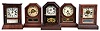 Clocks- 5 (Five): American-made 30 hour cottage clocks, some with alarm, by Atkins Clock Co. and Seth Thomas. clocks are in nice condition with attractive cases, some replaced dials, good glasses/mirrors, and legible inner labels. All have pendulums. Sold "as is ".
