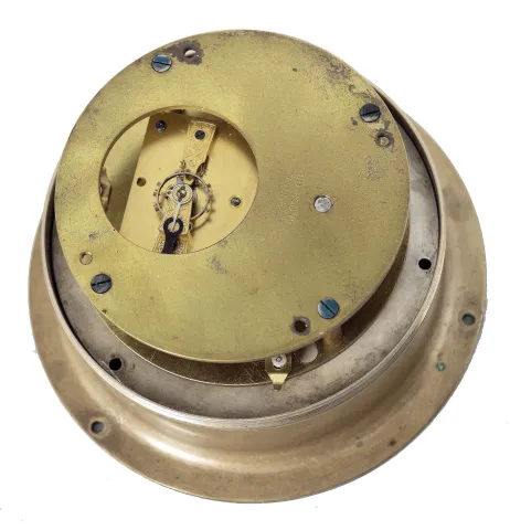 Clocks- 3 (Three) Early and Unusual Chelsea: (1) Chelsea Clock Co., Boston, marine timepiece, 8 Day, time only, spring-driven balance wheel movement in a brass case with screw-on bezel and silvered dial, extremely early serial number of 4241 stamped on