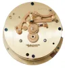 clock has a brass case with a bit of haze from the protective lacquer degrading. Silvered dial and hands are excellent Somewhat uneven finish on the wood base and a dark section on the front where a dedication plaque was removed. Barometer case is bright and excellent white signed dial is in very good condition. Movement serial number 857186. Not exactly a set, but a handsome pair.