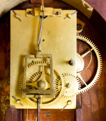 Massachusetts, 8 day, weight brass movement patent or banjo timepiece.