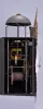 France, Comtoise wall clock, 8 day, time and strike, weight driven movement with verge escapement, thread suspension with front-hanging pendulum in an iron post and plate case with white enamel convex Roman numeral arcaded dial with Arabic minutes,