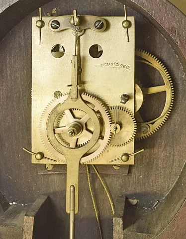 Eastman Clock Co., Boston, Mass., 8 day, weight brass movement patent or banjo wall timepiece.