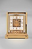 Jaeger-LeCoultre, Switzerland, "Atmos" clock, 15 jewel movement, gilt torsion pendulum, square white painted dial with applied gilt Arabic numerals and arrow markers, gilt hands all contained in a glazed rectangular case with removable front panel, serial #467632 Gilt brass case in very nice condition. Original painted dial is perfect. It has not been tested.