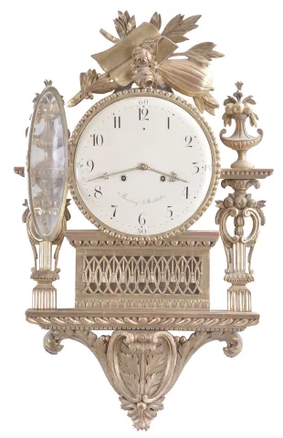 French / Austrian cartel wall clock for the Swedish market, signed "Beurling Stockholm",