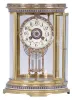 The case is dusty and dirty and could stand polishing, but otherwise this is a clean clock. All four curved beveled glasses are good. Well made movement with Brocot escapement between the plates has the Marti 1889 award stamp. It is also stamped "Made in France" The dial is perfect but for some very small losses along the bottom edge that have been masked with a bit of white filler. Rack and snail strike sounds on a cathedral gong. Just a bit of attention will make this a very nice clock.
