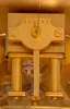 The gold finish on the case, glass panels, round dial and movement all look very good. The pendulum rotates and the hands advance.