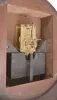 case is in very good condition and has had an application of clear finish applied over the original. Wood weight baffle has split horizontally and been repaired. Bezel glass is wavy. Lower tablet has been repainted with care. The metal dial has very fine craquelure. A large section of the center of the dial has been touched up with white paint. The color match is quite good, but the new paint has a bit less gloss compared to the original. Bluing is somewhat worn off of hands. Very nice pendulum with damascened pattern. Signed movement with spoked hour wheel is stamped with serial number is 438. A very hard-to-find model.