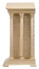 France, three piece mantel garniture set, 8 day, time and strike, spring driven pendule de Paris movement in a metal case of classic architectural form with stepped base, six full Corinthian columns flanking an ashlar facade with central arch, a painted