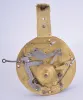 Brass hands have been repaired. The palmette at the bottom of the clock has been repaired and now has a different patina because of it. Evidence of modern adhesive holding the copper to the iron backing. Rear cover is made from brass and may be later. Rack and snail strike on a large bell mounted behind the movement. Rack tail made of brass may be an old repair. Unsigned round movement with thick plates, nicely turned pillars, and whimsical rack component in the form of a boot. Lots of evidence of hand finishing. Lever for hour repeat on the left side behind the dial.