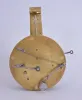 Southern Germany or Austria, telleruhr clock, 8 day, time and strike, spring driven movement with verge escapement and cowtail pendulum, mounted to an iron plate covered in copper relief birds, palmettes, and human faces on a scrolling field, the pendulum