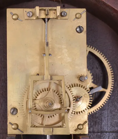 the case has had veneer restoration and the bottom has been replaced along with other restorations. The tablets have been repainted. The dial has been properly conserved and is in good condition with original paint and some fading to numerals. The hands are original. The finials are replacements.