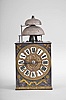 France, Comtoise clock, 8 day, time and strike with alarm, weight driven movement with verge escapement, thread suspension with rear-hanging pendulum in a iron post and plate frame, cast brass dial with a profile of Prince Louis, Dauphin of France